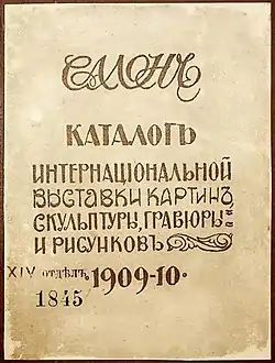 - Обложку каталога украшала ксилография работы Кандинского, воспроизводящая его же афишу выставки[57].