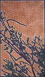 - Наталья Гончарова — «Борцы». 1908—1909 (Государственный Русский музей), экспонировалась на втором «Салоне». Херсонский корреспондент, укрывшийся за подписью «Vale», писал об этой картине в газете «Родной край» 18 мая 1911 года: «Наталья Гончарова, даром что дама, а любому живописцу вывесок 10 очков даст. Изобразила эта почтенная особа двух лягушек колоссальной величины, раскрасила их в три цвета: зелёный, жёлтый и красный и назвала „Борцы“»[70]. Более доброжелательно взглянул на её работы одесский критик «Альцест» (Е. Генис): «И так жаль подчас, что художник уродует себя, губит своё живое и ясное понимание красоты во имя каких-то диких теорий. В многочисленных работах Натальи Гончаровой, например, нет-нет, да и мелькнёт что-то хорошее, а одна вещица, Nature morte (чертополох) и совсем почти может понравиться. Художница несомненно чувствует краски, способна уловить тайную гармонию их сочетаний; но скоморошество всё-таки берёт вверх над искренностью, и она создаёт тогда такие уродливые вещи, как „Прокажённые“ (№ 87), „Соляные столпы“ (№ 98)…» («Одесское обозрение», 16 февраля 1911 года)[71]. «Чертополох». 1909—1910 (Государственная Третьяковская галерея, «Соляные столпы». 1908 (Третьяковская галерея).