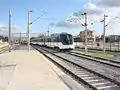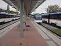 Поезд, ожидающий возвращения на станцию Алсанджак во время пробного запуска перед его открытием.