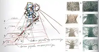 …поначалу у нас с ним были жуткие стычки. Он всё бегал и недоумевал, что за чудовище к нему пришло, и говорил мне: «Юра, как вы работаете?! Вы непрофессионально работаете». Я ему на первый раз принёс эскизы — для него это уже было странно. Я объяснял: «Понимаете, я вам принёс эскиз для того, чтобы вы поняли тональность музыки. Потому что дело не только в мелодии, но и в том, чтобы тональность просачивалась сквозь изображение, растворяясь в нём».