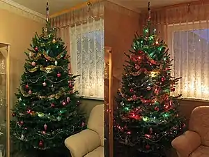 | В Ирландии ёлки украшают цветными фонариками и мишурой, шары не так популярны | |