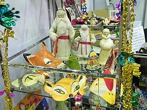 В ранний период при производстве игрушек использовалась вата (1930-е — 1950-е гг.), потом её заменил картон, позже большая часть игрушек стала изготавливаться из стекла.