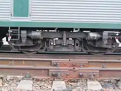 На каждой тележке АЧ2 расположено по четыре тормозных цилиндра, по одному на каждое колесо, или по два на одну ось. Усилие от цилиндра передаётся через рычажную передачу на колодку, которая прижимается к соответствующему колесу[40].