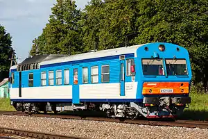 ![]() Четырёхвагонный дизель-поезд АЧ2/АПЧ2. Вид на автомотрису АЧ2-119 | |