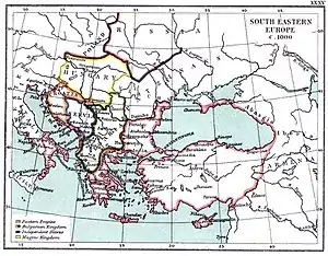Благоприятный момент для комитопулов настал в начале 976 года, когда скоропостижно умер или был убит византийский император Иоанн Цимисхий[28][29]. Воспользовавшись сумятицей в Византии, вызванной восстанием губернатора Месопотамии Вардой Склиром против молодого императора Василия II, болгары начали своё наступление на балканские провинции империи.