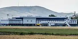 Здание аэровокзала. Пропускная способность: 400 чел./час, 3,5 млн человек в год. Режим работы: круглосуточно.