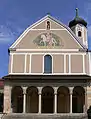 Вид на фасад монастырской церкви с изображением св. Мартина (Бойронская школа)