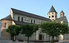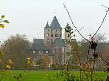 Аббатство расположено на первой надпойменной террасе над низиной бывшего русла (рукава) Рейна.