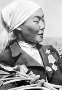 Этим же указом звания Героя Социалистического Труда были удостоены председатель колхоза Садыкул Байтурсунов, бригадир Сатар Сабиров, звеньевые Сукеш Мамбетова, Шаир Естебесова и Джумагуль Саринова.