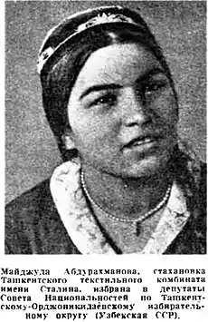 Ударницы труда — Манжуда Абдурахманова, Зинаида Акисимоза, Саодат Расулова и многие другие — сыграли большую роль в развитии текстильного комбината. Манжуда Абдурахманова стала одной из первых женщин в Узбекистане, переставших носить паранджу[1]. Её фото без паранджи опубликовал журнал «Работница» в декабре 1937 года.