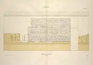 Был найден ранее своего аналога из храма Сети, в местности, носящей сейчас имя Арабат-эль-Мадфуне, на левом берегу Нила и отделён от стены Жаном-Франсуа Мимо (фр. Jean-François Mimaut), французским генеральным консулом в Александрии. Здесь, в древнем храме города Абту (Абидоса), Рамсес II начертал надпись, в которой он воздаёт почести своим предкам. Всех имён предков было до пятидесяти, но из них сохранилось не более тридцати; картушей самого Рамзеса насчитано двадцать восемь повторений. Этот список есть выборка из всего ряда предков Рамсеса, сделанная произвольно или по каким-либо соображениям, нам не доступным; начало этой таблицы не сохранилось. Перечисляя предков Рамсеса, список переходит внезапно от фараонов XVIII династии к царям XII династии, как бы связывая эти династии. Затем в списке находится 14 картушей более древних фараонов.