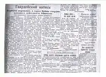 "Гвардейский натиск. «Первыми ворвались в город бойцы гвардии младшего лейтенанта Абикеева (От специального корреспондента Боевого товарища)».