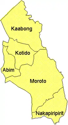 На севере и востоке район граничит районом Котидо, на юго-востоке и юге — с районом Напак, на юго-западе — с районом Отуке, на западе — с районом Агаго[1]. Столица района находится примерно в 140 км по шоссе к северо-западу от Морото, крупнейшего города в этой местности[2]. От столицы Уганды Кампалы, находящейся к юго-западу, город отделяет 366 км по шоссе[3].