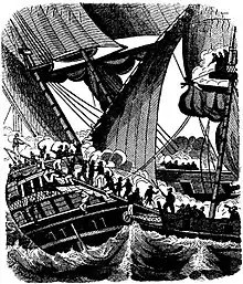 Аборда́ж (фр. abordage, от bord — «борт судна»; англ. boarding) — способ ведения морского боя во времена гребного и парусного флотов, атака корабля противника при непосредственном сближении с ним для рукопашного боя, а также способ сцепления кораблей для передачи (приёма) грузов или людей.[1]