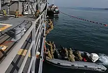 В настоящее время такой приём, как абордаж, применяют, главным образом, для захвата пиратских судов или судов, занимающихся незаконным рыболовством. При этом абордажная команда может высаживаться на захватываемое судно с вертолёта[3].