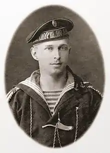 9 ноября 1916 г. Абрамов был зачислен в число обучающихся Школы прапорщиков по адмиралтейству при морской учебно-стрелковой команде в г. Ораниенбауме (ныне г. Ломоносов Ленинградской обл.). 12 декабря он принял присягу на верность службы Государю Императору и Родине. В январе 1917 г. его производят в строевые унтер-офицеры .