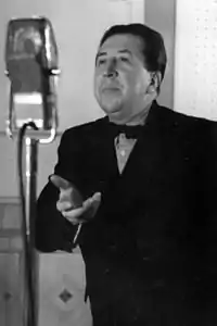 ![]() Георгий Абрамов у микрофона, 1950-е годы | |