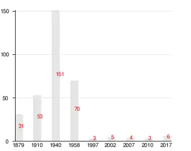 Число жителей по семейным спискам 1879 г.: 14 м. п., 17 ж. п.; по приходским сведениям 1879 г.: 14 м. п., 18 ж. п[2].