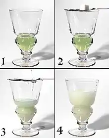 Абсент мутнеет от добавления воды, так как эфирные масла аниса и фенхеля при разбавлении крепкого спиртового раствора образуют эмульсию[12].