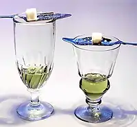Абсе́нт (фр. absinthe от др.-греч. ἀψίνθιον — полынь горькая) — алкогольный напиток[1][2][3][4], содержащий обычно около 70 % (иногда 75 % или даже 89,9 %) алкоголя. Важнейший компонент абсента — экстракт горькой полыни (лат. Artemisia absinthium), в эфирных маслах которой содержится большое количество туйона. Однако в самом абсенте содержатся лишь следовые количества этого вещества.[5][6][7][8]