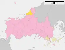 Расположение уезда Абу в префектуре Ямагути.