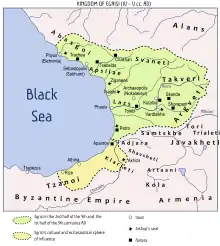 В IV и V веках Абасгия была подчинена Лазике.[19] В IV веке христианство уже было распространено в Абхазии, епископ Питиунта принимал участие в Первом Никейском соборе (325 год)[18]. К VI веку Абасгия (между реками Гумиста и Бзыбь со столицей в Анакопии) была подчинена Восточной Римской империи.[19] В первой половине VI века христианство становится официальной религией; строятся христианские храмы, появляется Абазгийская архиепископия в составе Константинопольской патриархии, имевшая кафедру в Себастополисе. В конце VII — начале VIII веков абхазское побережье подвергалось арабским набегам. При Леоне II в конце VIII века Абхазия добилась независимости от Византии. Возникло Абхазское царство, его территория распространялась на всю Западную Грузию. Население царства состояло из абхазов и картвельских племен (грузины), последние согласно З. В. Анчабадзе составляли значительное большинство[20]. Столица первоначально находилась в Анакопии (Новый Афон), а в 806 году переместилась в Кутаиси[18], византийское культурное влияние сменяется грузинским. В VIII веке формируется самостоятельны Абхазский католикосат. В Абхазском царстве существовали многочисленные города, крепости и храмы. Население вело торговлю с соседними государствами, странами Ближнего Востока и Средиземноморья. После пресечения в 975 году местной династии власть перешла к Багратионам, и до XV века Абхазия находилась в составе единого Грузинского царства. Значительными памятниками культуры средневековой Абхазии являются храмы в Бедиа, Илори, Мокви, цитадель Баграта, Келасурская стена, Анакопийская крепость и т. д. В 1240-х годах монголы разделили Грузию на восемь военно-административных секторов, территория современной Абхазии составляла часть Думана, управляемого Цотне Дадиани. Позже Цхуми (Сухуми) служил столицей правителей Мингрелии, именно в этом городе Вамек I (ок. 1384-1396), самый влиятельный Дадиани, чеканил свои монеты.