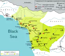 В 1454 году османский султан Мехмед II, заинтересованный в контроле над восточным Причерноморьем, взял Сухуми, который тогда находился под мегрельским контролем[21]. В XV веке произошёл распад единого Грузинского царства, что привело к выделениюАбхазского княжества. Черты феодализма времён позднего Средневековья были тесно переплетены с традиционными общинными нормами. Центробежным устремлениям феодальных кланов эффективно противостояли влиятельные князья Чачба-Шервашидзе[22].