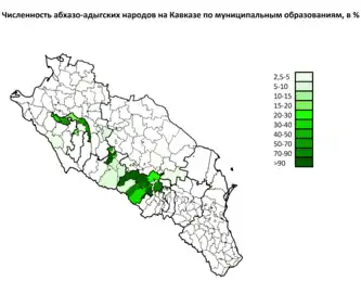 Ареал расселения — Северный Кавказ и Южный Кавказ, а также диаспоры в различных странах мира. Исторически включала в себя множество близкородственных племён (субэтносов), разделённых на три группы — адыги (черкесы), абхазы и абазы.