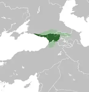 Абхáзское царство — средневековое государство в Закавказье с центром сначала в Анакопии[8][9], затем с 806 года — Кутаиси[4][10]. На рубеже 786—787 годов при содействии Хазарского каганата провозглашено независимое от Византии Абхазское царство во главе с Леоном II[10]. Расцвет царства приходится на период между 850 и 950 годами[4]. К началу X века царство включало в себя всю нынешнюю Западную Грузию с Абхазией и часть Восточной Грузии, в середине X века — закрепило за собой часть Кахетии и север Тао-Кларджети.