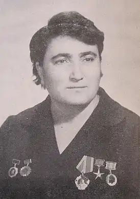 - Герой Социалистического Труда (Указ Президиума Верховного Совета СССР от 30 апреля 1966 года, орден Ленина и медаль «Серп и Молот») — за успехи, достигнутые в увеличении производства и заготовок винограда, плодов, овощей и картофеля[10].