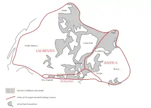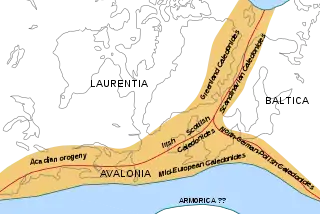 В позднем силуре и раннем девоне соединившиеся Балтика и Авалония постепенно сомкнулись с Лаврентией, начиная с обширной оконечности Авалонии, которая сейчас относится к территории США и Канады. В результате сформировался материк, известный под названием Лавруссия. Результатом этого столкновения были проявления складчатости и горообразования (орогенеза), а именно каледонская складчатость и ранняя фаза акадской складчатости. На момент завершения данного этапа дрейфа палеозойских материков Британия располагалась на 30° южной широты, в то время как Новая Шотландия — примерно на 45°.
