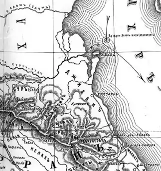 «И выбрал Ануширван царей и назначил их, предоставив каждому из них шахство над отдельной областью. Из Них были хакан Горы, то есть владетель Сарира (трона), с титулом Вахрарзаншах, и царь Филана, он же Филаншах, и Табасараншах, и царь ал-Лакзов, с титулом Джурджаншах, и царь Маскута, царство которого теперь не существует, и царь Лирана с титулом Лираншах, и царь Ширвана, именующийся Ширваншахом. И утвердил властителя Бухха над Буххом и властителя Зирикирана над Зирикираном; и утвердил он царей горы Кабак в их владениях и заключил с ними мир, обязав ему платить подати»[31].