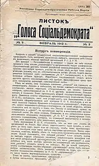 Листок «Голоса Социал-Демократа» c критикой организаторов Пражской конференции (февраль 1912)