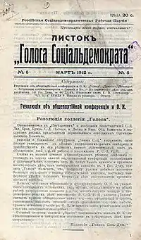 Листок «Голоса Социал-Демократа» с поддержкой Августовской конференции (март 1912)