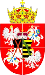 Август Сильный[5], также Фридрих Август I Саксонский и Август II Польский (нем. August II. der Starke; польск. August II Mocny, лит. Augustas II; 12 мая 1670, Дрезден — 1 февраля 1733, Варшава) — курфюрст Саксонии с 7 мая 1694 года, король польский и великий князь литовский с 15 сентября 1697 года (провозглашение королём 17 июня 1697 года) по 16 февраля 1704 года (1-й раз, фактически до 24 сентября 1706 года) и с 8 августа 1709 года (2-й раз).
