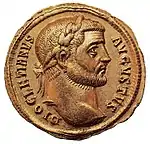 Древнеримская монета с изображением императора Диоклетиана и надписью «август»