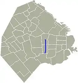 Начавшись в районе Альмагро, в том месте, где проспект Авенида Ривадавия пересекает улицу Бульнес, причем последняя, это продолжение Авенида Боэдо. Проспект расположен в непосредственной близости от станций метро Кастро Баррос и Лория Линии метро A.