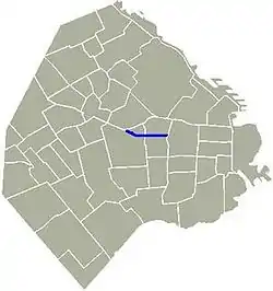Начавшись на границе районов Бальванера и Альмагро, от улицы Галло и железной дороги Сармьенто. Идёт в западном направлении.