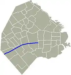 Начавшись на границе между районами Кабальито, Боэдо и Парке-Чакабуко, является продолжением проспекта Авенида Сан-Хуан после того, как он пересекает проспект Авенида Ла-Плата. Продолжает свой путь на запад по районам Флорес, Матадерос, Парке-Авельянеда, идя параллельно улицам Авенида Ривадавия, Авенида Хуан Баутиста Альберди и Авенида Эва Перон. Проспект заканчивается в нескольких метрах от шоссе Авенида Хенераль Пас.