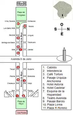 Что касается бизнеса, самый роскошный и большой отель был «la Ciudad de Londres» (Город Лондон), который занимал юго-восточный угол улицы Перу[7], выходящий широким фасадом на проспект Авенида де Майо, но он сгорел 19 августа 1910. Также существовали отели Новая Англия, Састрериа Каса Муньос (Sastrería Casa Muñoz) под номером 1119, Мэйсон Перу и т. д. Одно из самых роскошных и впечатляющих зданий это Инмобилиария, построенное в 1910 году. Торговые центры и пассажи занимают 6 кварталов из 14,[8] наиболее интересны Пассаж Роверано, Паласио Бароло и Пассаж Уркиза-Анхорена.