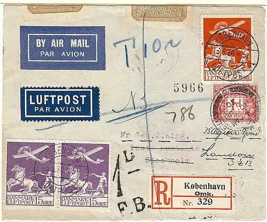 - См. подробности в английской статье Airmail stamps of Denmark.
