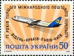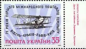 Марка Украины (1993): 75 лет первому авиапочтовому перелёту Вена — Краков — Львов — Киев (Mi #98)[^]
