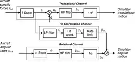 При разработке математического закона движения платформы тренажёра моделируемое на тренажёре уравнение движения ВС с помощью методов гармонического анализа раскладывают в ряд гармонических колебаний — гармоник. Первые гармоники — гармоники самой малой частоты вносят наибольший вклад в перемещение самолёта. При этом человек именно к этим длиннопериодическим колебаниям наименее чувствителен. Так, если медленно увеличивать перегрузку до небольших значений, то человек в положении сидя может даже не почувствовать её изменения. Высшие гармоники с ростом частоты вносят все меньший вклад в движение и они все более чувствительны для человека. Поэтому низшие гармоники подавляют, используя фильтр верхних частот.