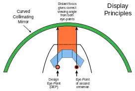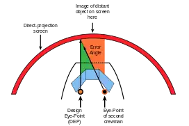 Современные системы визуализации бывают двух типов — проекционные и коллимационные. В системах визуализации обоих типов изображение проецируется с помощью проекторов на сферических или цилиндрических экранах. Проецирование изображения на экранах, расположенных в непосредственной близости от кабины тренажёра, приводит к тому, что линия визирования удаленных проецируемых объектов зависит от положения глаз пилотов. Угол этой ошибки — параллакс — можно оценить формулой