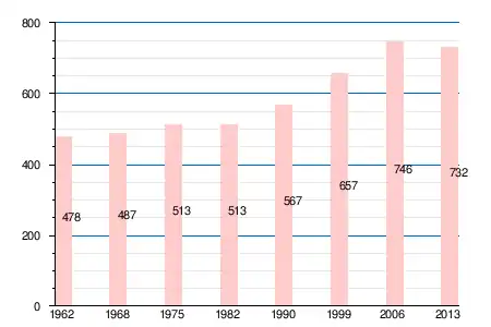Население коммуны в 2011 году составляло 727 человек[6], в 2012 году — 726 человек[7], а в 2013-м — 732 человека[5].