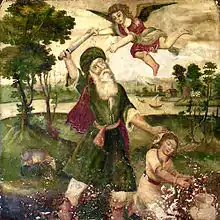 В раннехристианской доктрине жертвоприношение Исаака рассматривается как предсказание мученичества Христа. По мнению Отцов Церкви, Иисус сам указал на эту историю как на прообраз предстоящей его голгофской жертвы: «Авраам, отец ваш, рад был увидеть день Мой; и увидел и возрадовался» (Ин. 8:56). Это мнение содержится уже в трудах Иринея Лионского[27] (II век), Григория Богослова[28] (IV век) и развивается последующими богословами. Ими сравнивается послушание Исаака воле Авраама и Иисуса воле Бога Отца, несение Исааком дров на гору называется прообразом несения Иисусом Креста, а его путь на гору — крестным путём на Голгофу.