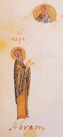 Авраа́м (др.-евр. אַבְרָהָם, Avrāhā́m, «отец множества»[10]; др.-греч. Ἀβραάμ; лат. Abraham; араб. إبراهيم Ibrāhīm), изначально Авра́м[11] — библейский персонаж: сын Фарры, отец Измаила и Исаака. Родоначальник евреев, арабов и других народов. Первый из трёх еврейских патриархов (Авраам, Исаак, Иаков); первый, кто в Библии называется евреем (Быт. 14:13)[6].