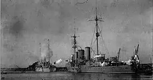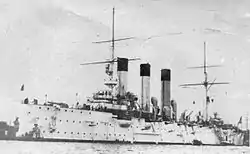 | Двигатели | 3 вертикальные машины тройного расширения, 24 водотрубных котла Бельвиля |