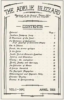 - Leane E. The Adelie Blizzard: the Australasian Antarctic Expedition’s neglected newspaper // Polar Record. — 2005. — Vol. 41, no. 216. — P. 11—20. — doi:10.1017/S0032247404003973.