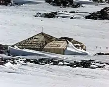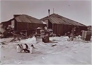 ![]() Основная база экспедиции на мысе Денисона вскоре после постройки | |